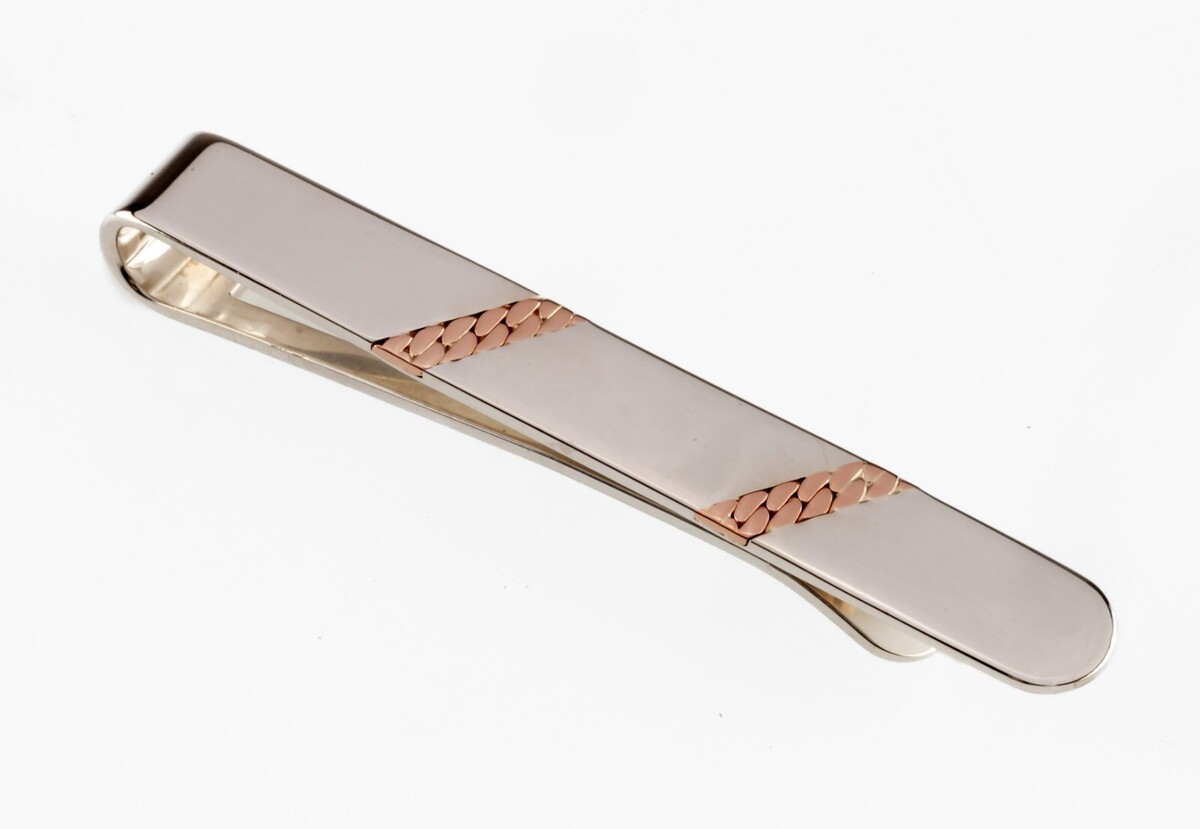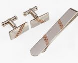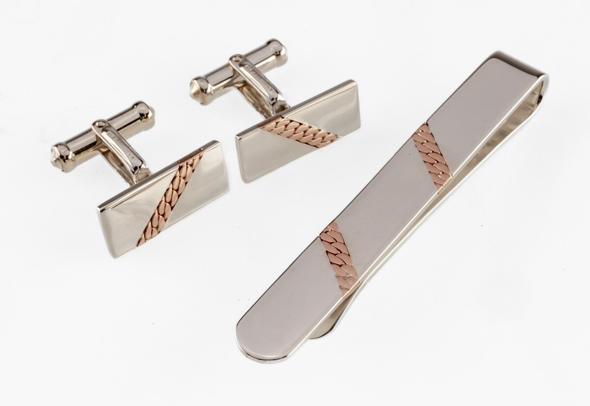 Posteriore Ballou Argento Sterling E 14k Oro Rosa Fermacravatta E Set Gemelli