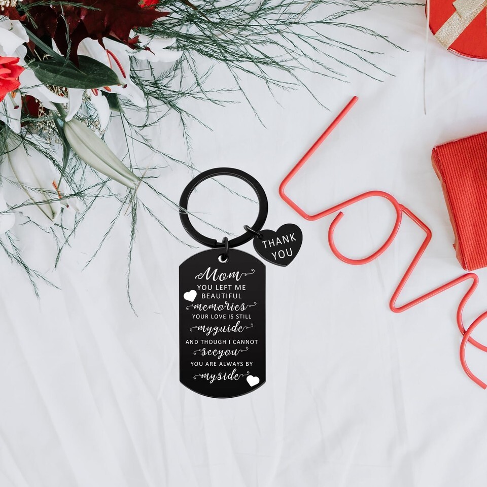 Sentimental Tribute: As the quote says, "Mom, you left me beautiful memories, your love is still my guide, and though I cannot see you, you are always by my side," This angel keychain serves as a lasting tribute to your friend's Mother, reminding them that their loved one is always near