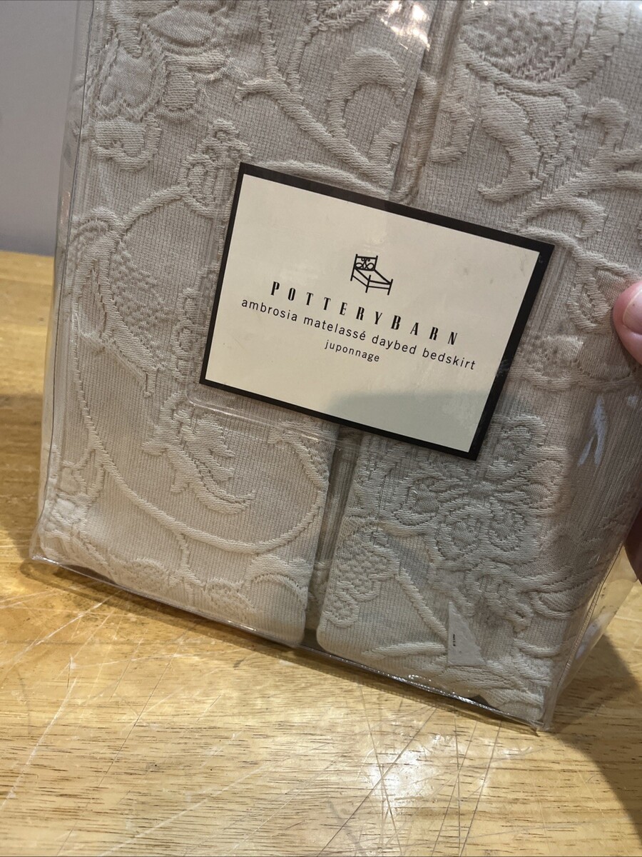 - Pottery Barn Ambrosia Matelasse Daybed Bed Skirt Naturals Tan Cotton NEW