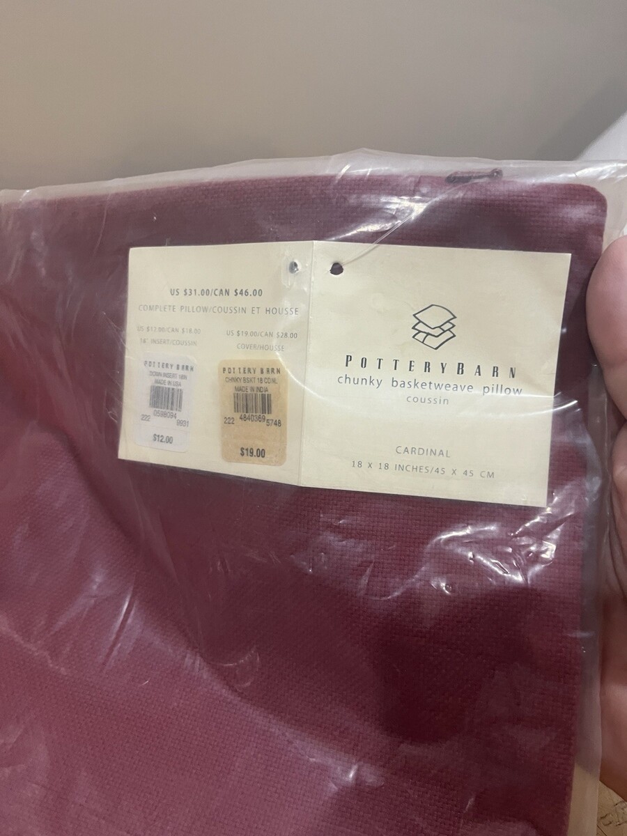 - Pottery Barn Cardinal Basketweave 20" Throw Pillow Cover Maroon Red 100% Cotton