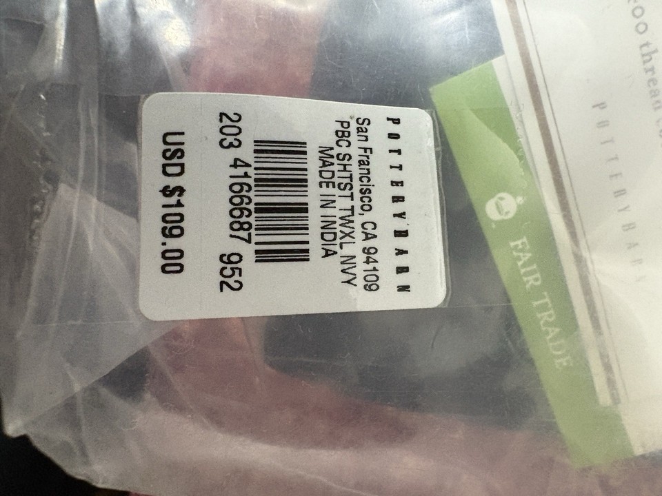 The Pottery Barn Twin Extra Long Classic 400TC Sheet Set in Gray Mist is a timeless and elegant addition to any bedroom. Made from organic cotton with a thread count of 400, these sheets offer a luxurious feel. The solid navy blue color and classic rectangular shape make them versatile for both teens and adults. Easy to care for with machine washable instructions, these fitted and flat sheets are designed for a contemporary style bedroom decor. The Pottery Barn Classic 400TC Sheet Set brings a touch of sophistication to your sleep space.