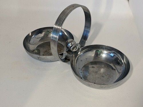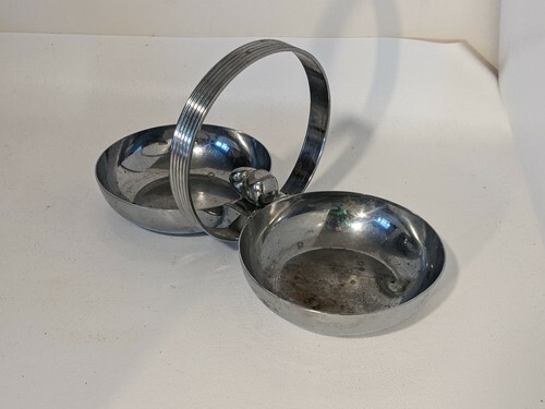 A vendre est un Chase Chrome Art Deco Double Candy Nut Dish Handle MCM Retro Whale Fish.