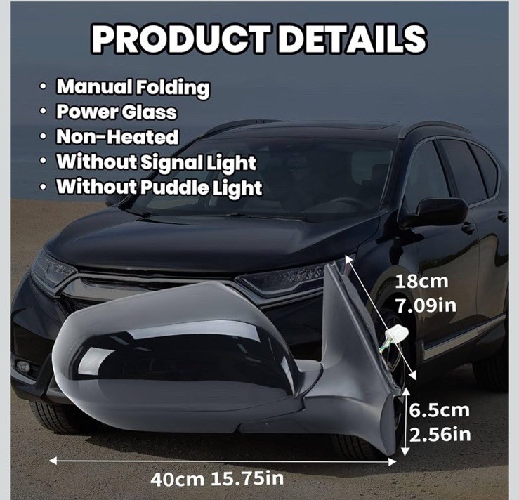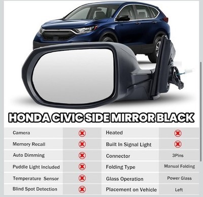 - Power Heated Door Mirror for 2017-2022 Honda CR-V Left Driver Side