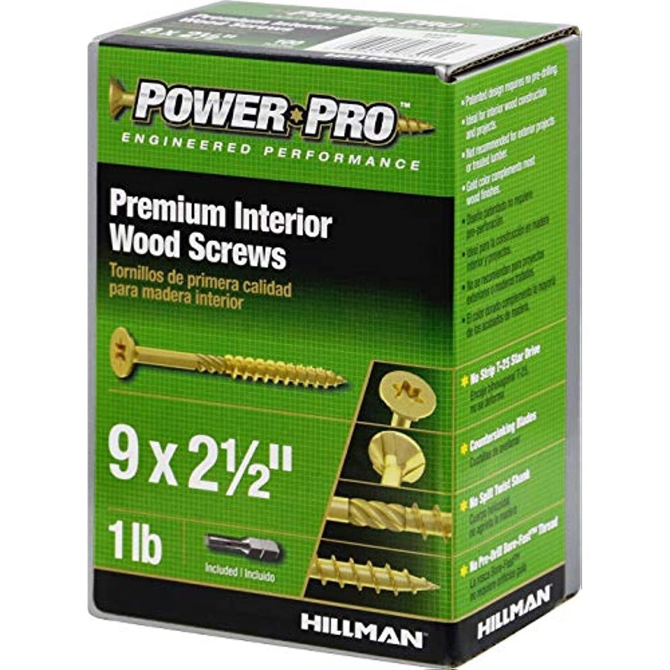 - Power Pro 48583 Wood Screws, #9 x 2-1/2, Premium Star Drive Indoor Cabinet