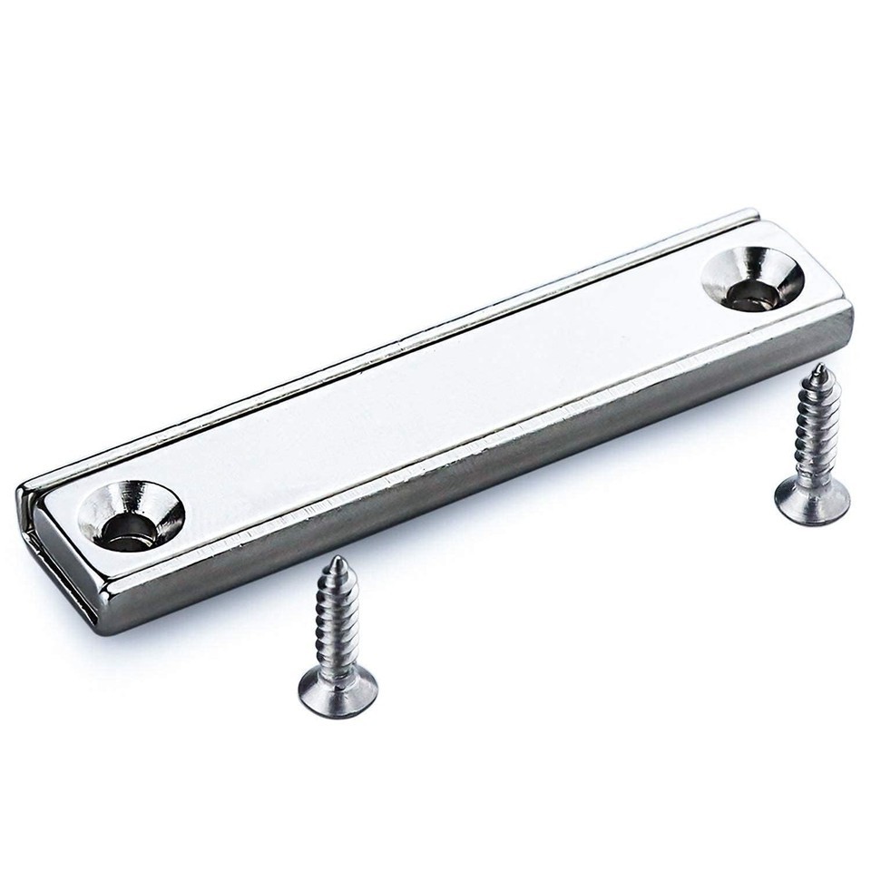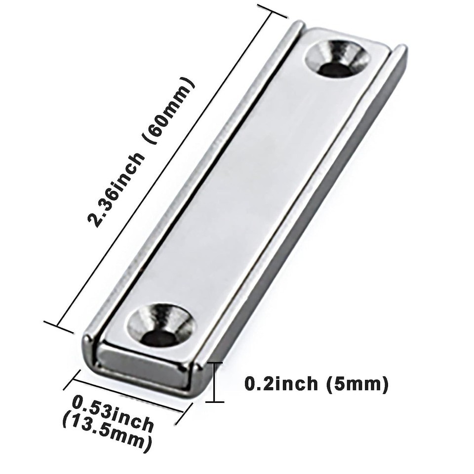 Discover the power of our Neodymium Magnets, crafted from rare earth metal to deliver consistent, long-lasting magnetic strength. Encased in a secure steel channel with a triple-layer Ni+Cu+Ni coating, these magnets provide rust resistance and a shiny finish. With easy-to-install countersunk holes designed for #3 screws, they are ideal for holding, mounting, and DIY projects, including cabinet or shower door catchers. Certified under 9001, our high-quality magnets are available for bulk customization to meet your specific needs.