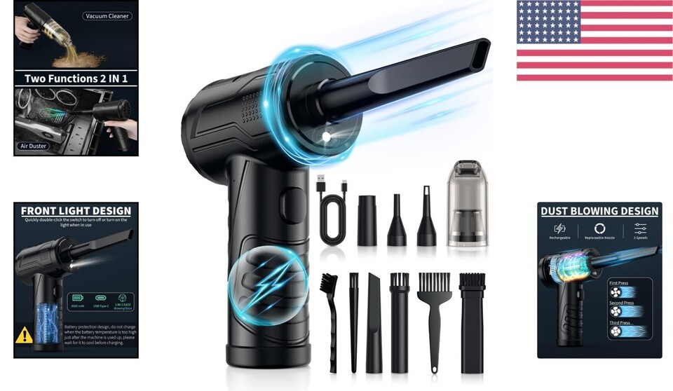 - Powerful Rechargeable Air Blower with 3 Speed Settings - Deep Cleaning Anywhere