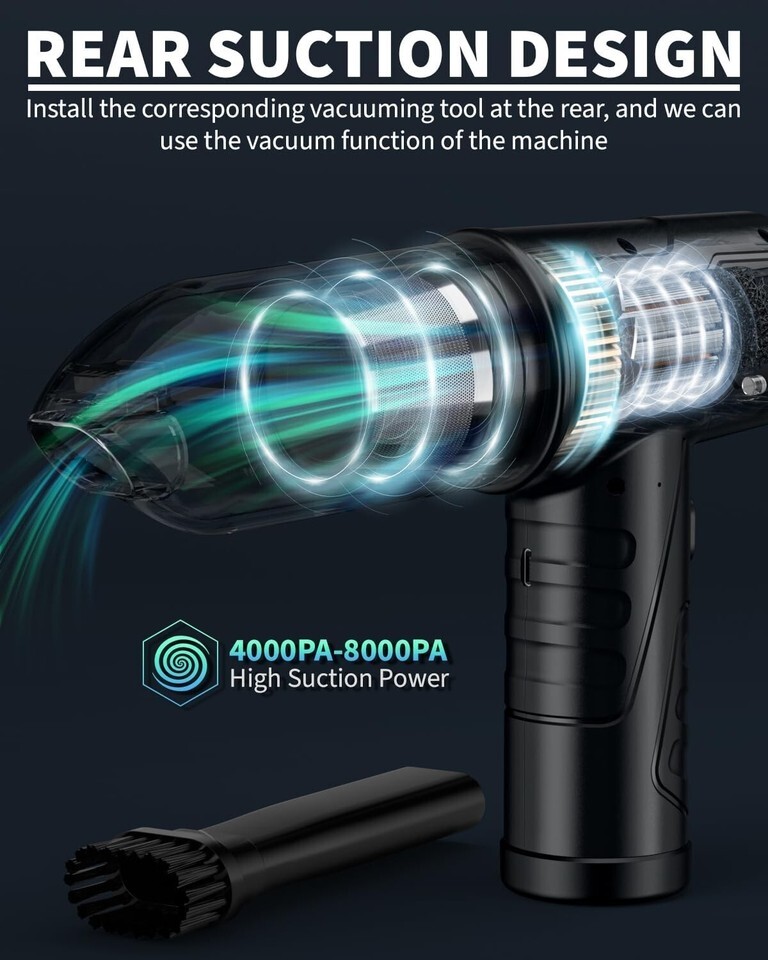 Experience the ultimate cleaning convenience with our powerful rechargeable air blower, designed to make deep cleaning a breeze no matter where you are.