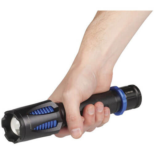This heavy duty, aircraft-grade aluminium torch is made for use in the toughest of conditions. It features an o-ring seal protecting the inside from the elements including rain and dust. The ergonomic design of the torch handle prevents it from slipping from your hand. An ultra-bright 4000 lumen LED light produces a beam that reaches 320 metres and provides up to two hours of continuous use. An adjustable head allows you to focus the beam, and you can utilise the three light modes: high, low and off. When the battery power is low, remove the batteries and charge them from any USB power source using the supplied cradle and MicroUSB cable