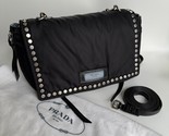 - Prada Tessuto Etiquette Bag Nylon Leather Studded Crossbody Shoulder Flap
