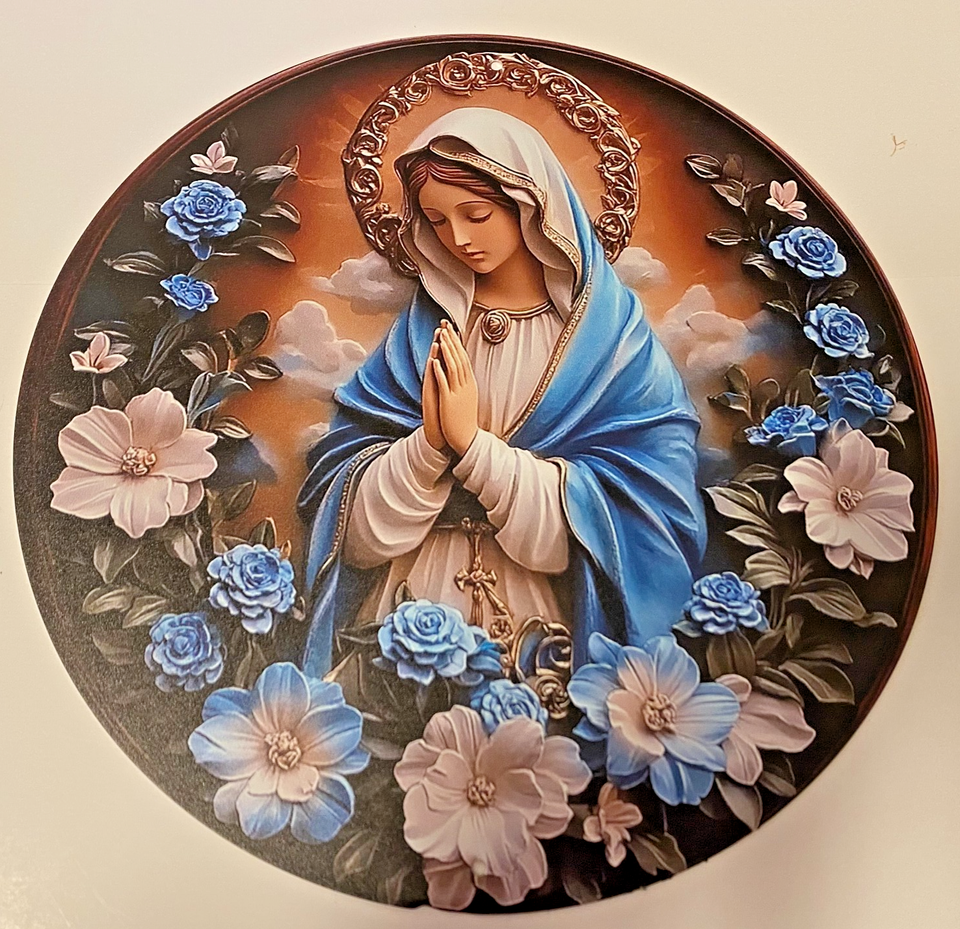 Your purchase is for a beautiful image of Praying Blessed Virgin Mary on aluminum.
