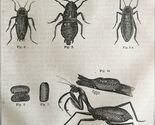 Praying Mantis Roaches Earwigs 1863 Victorian Farming Agriculture Insects DWZ4A