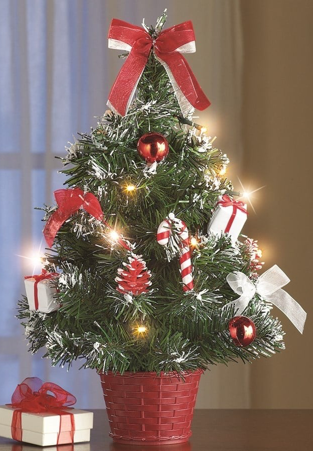 Pre-Lit Decorated Christmas Tree Candy Cane Red White Table Holiday Home Decor