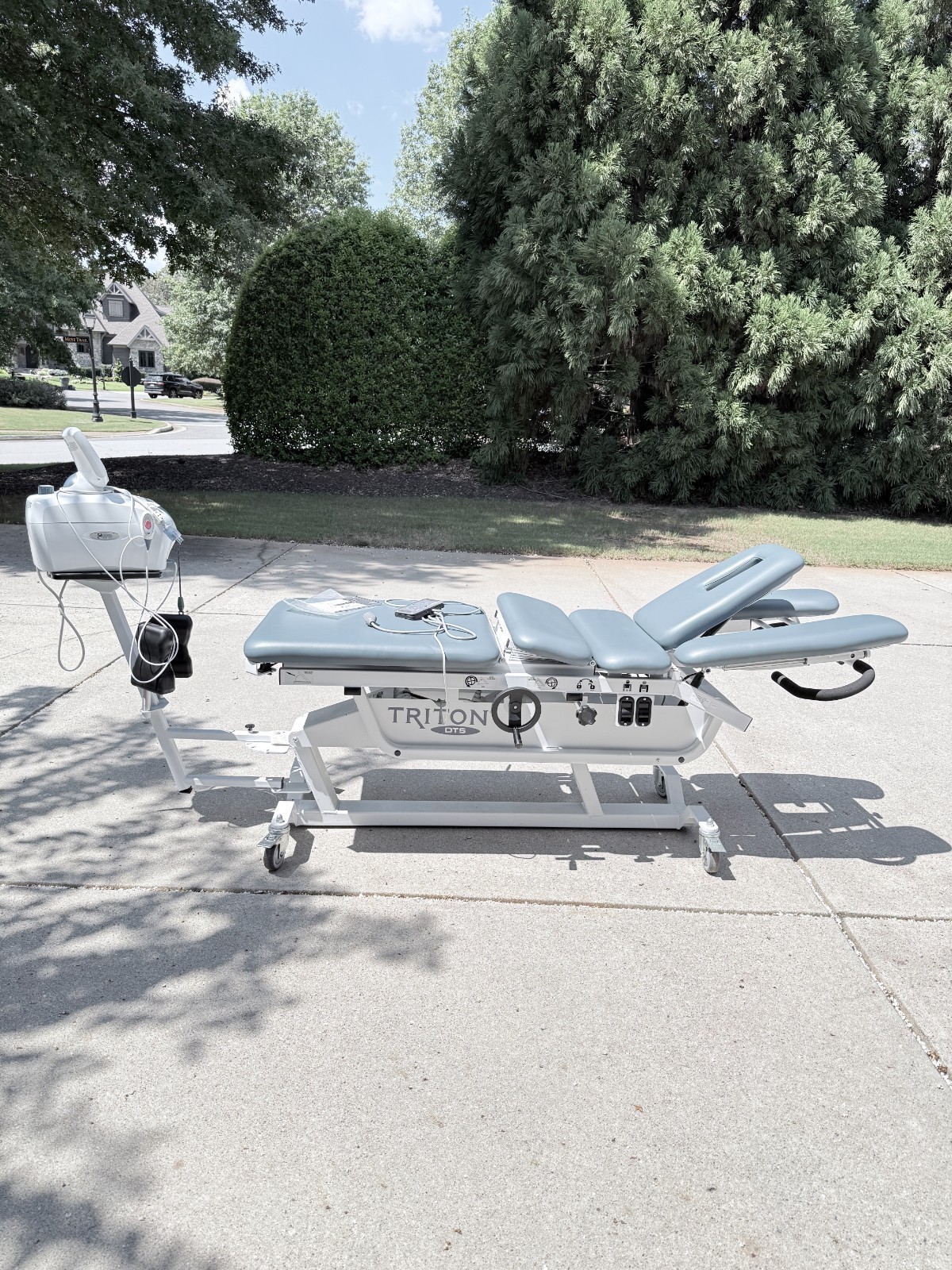 This is a rare opportunity to own a pre-owned Triton DTS TRT-600 spinal decompression system in excellent condition at a fraction of the cost of new. With minimal use and only a small cosmetic defect, this unit is ready to serve your practice for years to come.