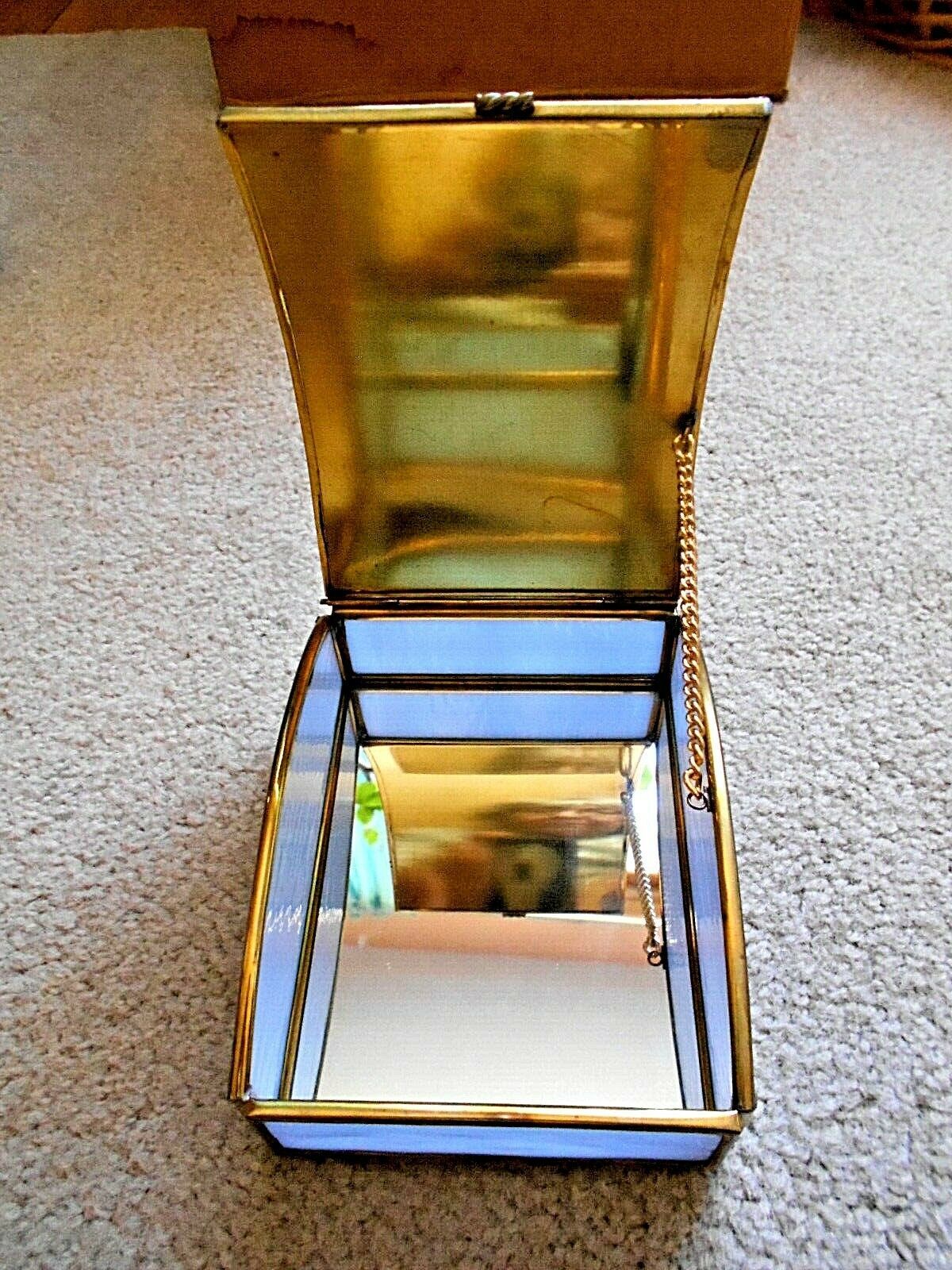 - The Jewelry box has mirror in bottom and compartment inside is 3-1/2" wide x 5" long x 1" deep