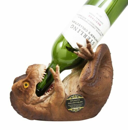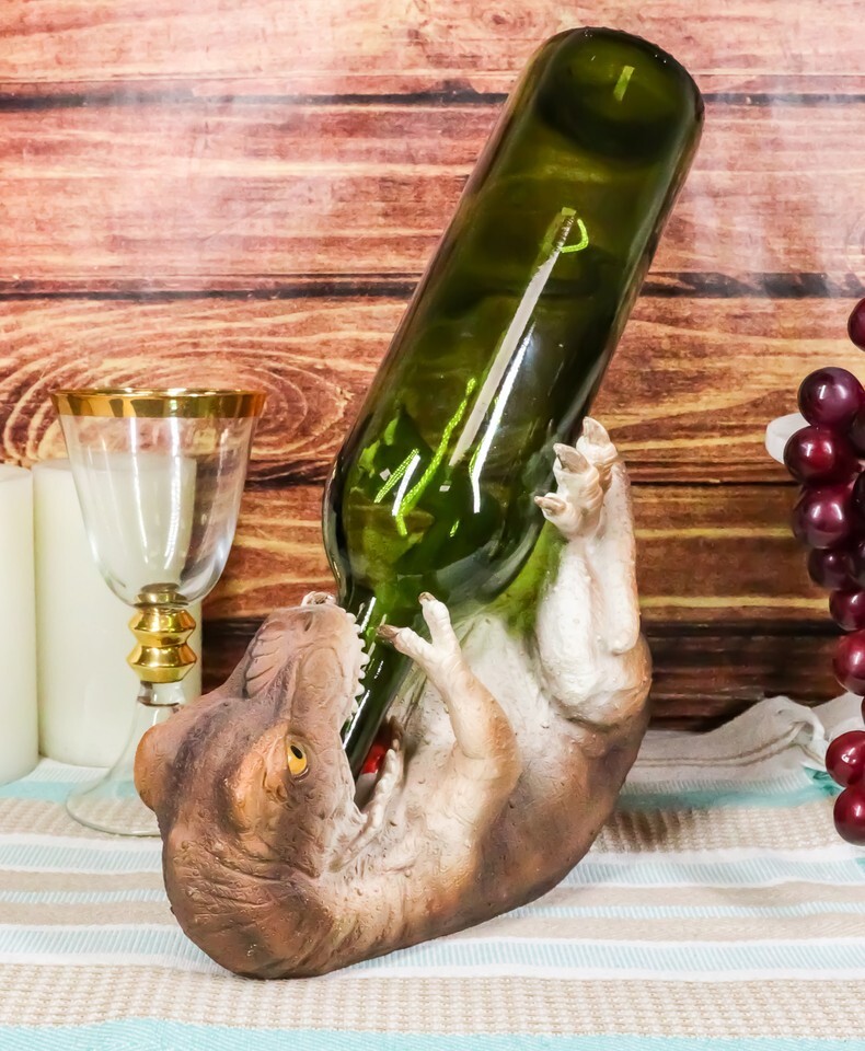 ? This dinosaur wine holder is an exotic representation of the prehistoric giant. This T-Rex is unique because after feasting on meat, it will guzzle down a whole bottle of wine!