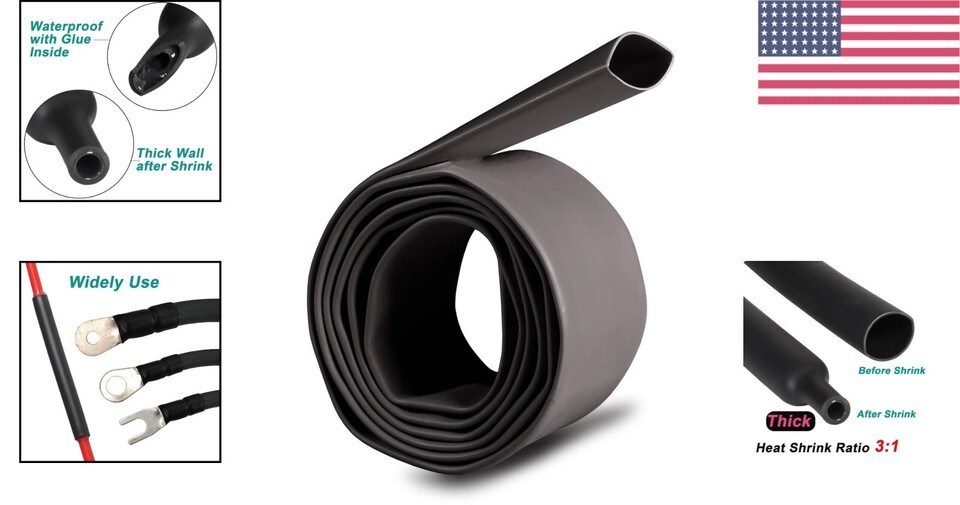 - Premium 1.5" Diameter Heat Shrink Tubing - 4ft Waterproof Dual Wall Protector