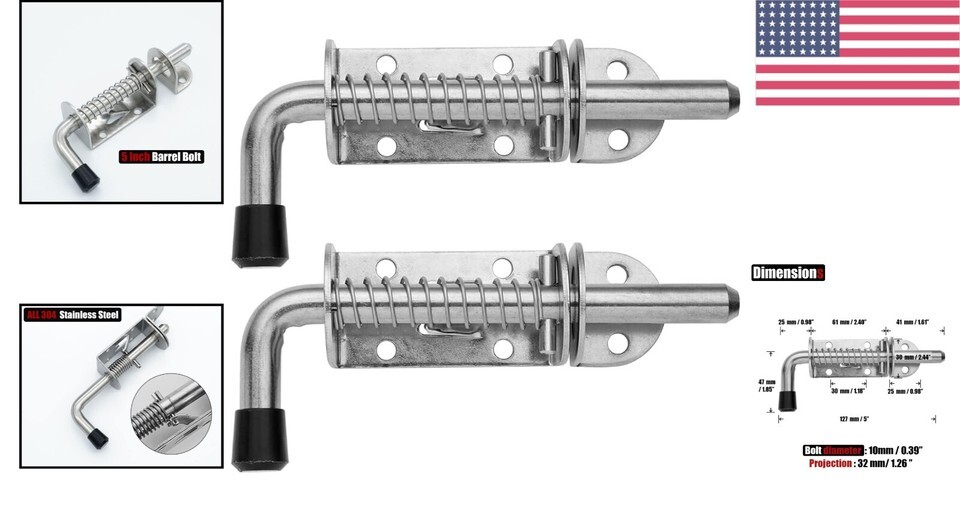 - Premium 2-Pack Spring Loaded Latch Pins - 5 Inch T-304 Stainless Steel Locks