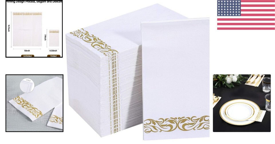 - Premium 3-Ply Dinner Napkins with Gold Trim - 200 Count for Sophisticated Events