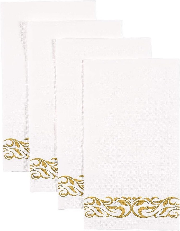 Features: Disposable,3-ply,soft,absorbent,single-use,elegant design,gold trim decorative design