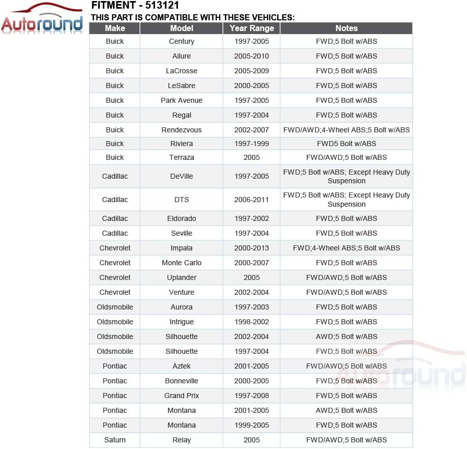 - Premium 5-Lug Wheel Hub and Bearing Assembly for Chevy, Buick, Cadillac, Pontiac