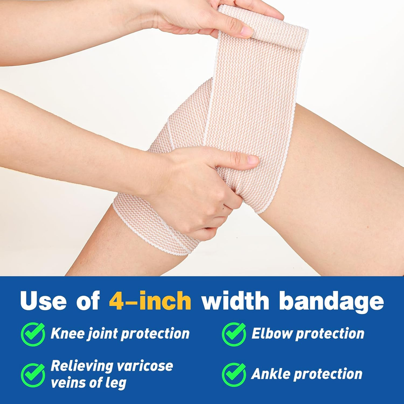 Premium Quality Material: Our elastic bandages are made of high quality, comfortable and lightweight fabrics, which are very friendly to the skin. It breathes your skin, prevents rashes or irritation, and helps to avoid adverse reactions. Latex-Free, very elastic
