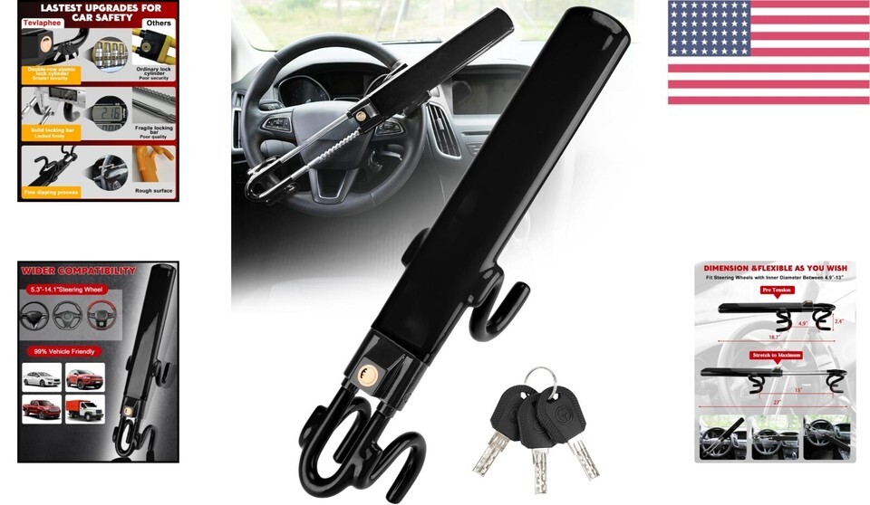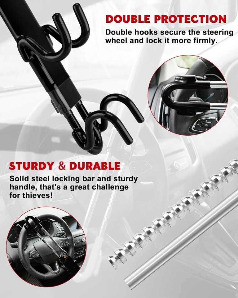 - Premium Adjustable Steering Wheel Lock - Ultimate Heavy Duty Anti-Theft Solution