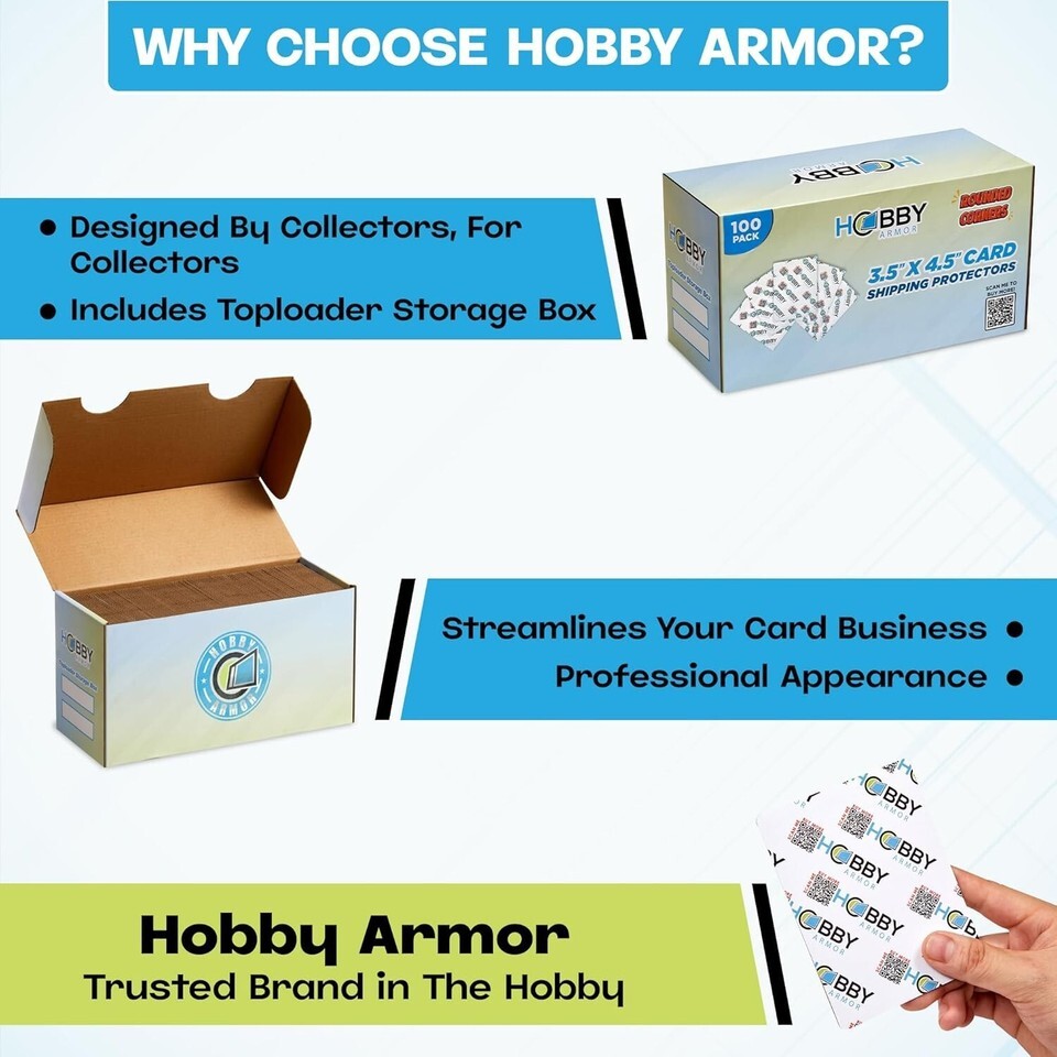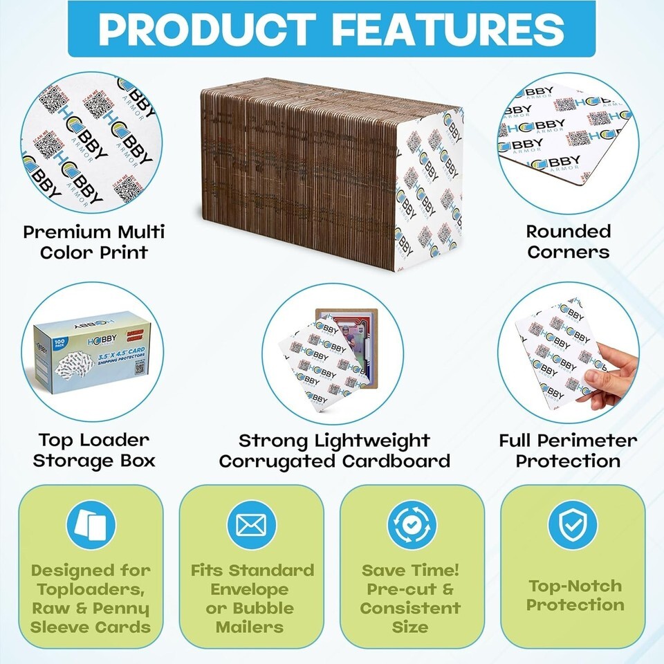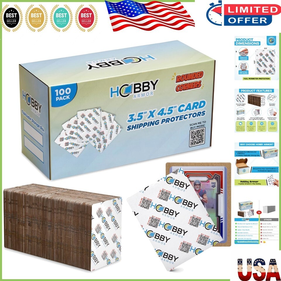 Premium Card Shipping Protectors - 3.5" x 4.5" with Rounded Corners, 100 Pack ? ? ? ? ? ? ? ? ? ? ? ? ? ? ? ? Premium Card Shipping Protectors Size: 3.5" x 4.5" with Rounded Corners - 100 Pack Features: Much lighter than plastic ? Crafted from strong, thin corrugated cardboard. Extra glossy layer for enhanced strength and a polished appearance. Rounded corners for easy loading and handling. Designed to be compatible with toploaders, penny sleeve cards, and raw cards. Ideal for use with standard envelope PWE or thick padded envelopes. Cardboard insert dimensions: 3.5" x 4.5" with a 1/4" margin for maximum protection. Pack includes a toploader storage box for post-use organization. Benefits: Super lightweight compared to traditional plastic protectors. Professional appearance ? perfect for card collectors and sellers. Easy to load, minimizing wasted supplies and time. Securely defend your cards during transit, preventing damage or dings. Supports card breakers, bulk card shippers, and collectors alike. Why choose our Premium Card Shipping Protectors? Elevate your card shipping game with our Premium Card Shipping Protectors, meticulously designed for card collectors and enthusiasts. Our protectors are made from strong and sleek corrugated cardboard, providing you with a sophisticated yet effective solution for your trading cards. With rounded corners that eliminate the hassle of sharp edges ripping bubble mailers, you can streamline your shipping process and focus on what truly matters: connecting with fellow collectors. Our 100-pack comes with a convenient storage box, ensuring that your collections are organized long after the protectors are used up. Let us take care of the heavy lifting while safeguarding your precious cards. Choose our Premium Card Shipping Protectors and experience the finesse and quality your collection deserves! Shipping Free Fast Shipping - We offer free shipping to most of the USA with a normal delivery time of 3-7 days. However, due to the current situation, additional delivery time (up to 3 weeks) may be required for some items. Alternative Carriers - We may use alternative carriers (e.g. USPS, FedEx, UPS, etc.) to ensure your package arrives safely and on time. Due to the use of multiple carriers, we are unable to provide a tracking number automatically. Handling Time - Orders are processed and shipped within 1-2 business days of receiving cleared payment. Shipping Restrictions - Shipping to Alaska, Hawaii, Puerto Rico, Guam, and other US territories may incur shipping charges or delivery restrictions. Please contact us before ordering, or your order can be refunded/cancelled. State Restrictions - There may be restrictions based on your state of purchase. For example, certain items may not be shipped to California due to state regulations. Contact for Tracking Updates - If you require tracking updates or have any concerns about the delivery of your order, please feel free to contact us, and we will be happy to assist you. Return 30-Day Hassle-Free Returns - We want you to be completely satisfied with your purchase. If you are not, you can return the item within 30 days of receiving it for a full refund or exchange. Easy Return Process - To start a return, simply contact us and we will provide you with a prepaid return shipping label and detailed instructions. Restocking Fee - There are no restocking fees for returns. However, the buyer is responsible for return shipping costs if the return is not due to a seller's error. Refund Processing Time - Refunds will be processed within 5 business days of receiving the returned item in its original condition. Payment We accept all major credit cards, PayPal, and Apple Pay for your convenience. Your payment information is secure and encrypted to ensure a safe and seamless transaction. Please complete your payment within 3 days of purchase to avoid any delays in shipping. Feedback Your feedback is extremely important to us. We strive to provide the best products and customer service possible. If you are satisfied with your purchase, please take a moment to leave us a positive review. If you have any concerns or issues with your order, please contact us before leaving negative feedback. We are committed to resolving any problems and ensuring your satisfaction. Contact Us If you have any questions or concerns, please feel free to reach out to our customer support team. You can contact us through the messaging system. We are available Monday to Friday, 9:00 am to 5:00 pm EST, and we will do our best to respond to your inquiry within 24 hours. Buy it now and enjoy a pleasant shopping experience! UPC: Not Set Autograph Format: Trading Card Protectors Material: Cardboard,corrugated cardboard,glossy cardboard Features: Rounded Corners,vibrant color,premium lightweight,glossy finish,easy to load,1/4 inch margin,designed for toploaders,designed for penny sleeves,designed for raw cards,packaging for shipping,supports card hobby Type: Shipping Protector Brand: Unbranded Number of Toploaders/Card Holders: 100 Compatible Card Thickness: Not Set Color: Vibrant Compatible Card Size: 3.5" X 4.5" Card Holder Type: Not Set Year Manufactured: Not Set Country/Region of Manufacture: Not Set Signed By: Not Set Item Length: Not Set Item Height: 3.5 in MPN: Not Set Autographed: Not Set Inscribed: Not Set