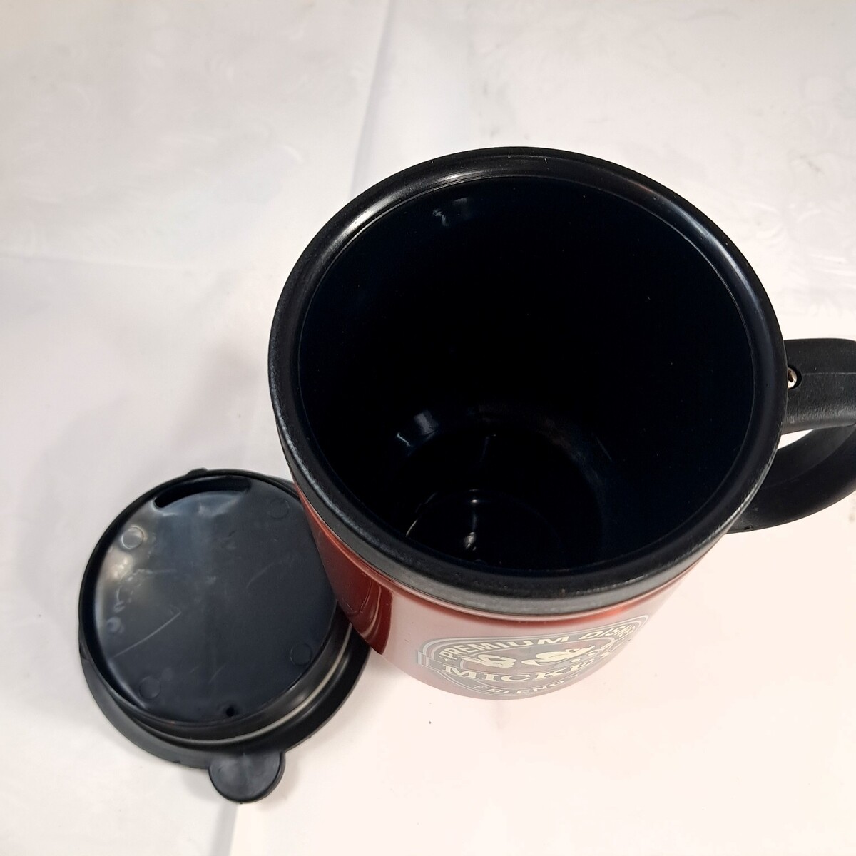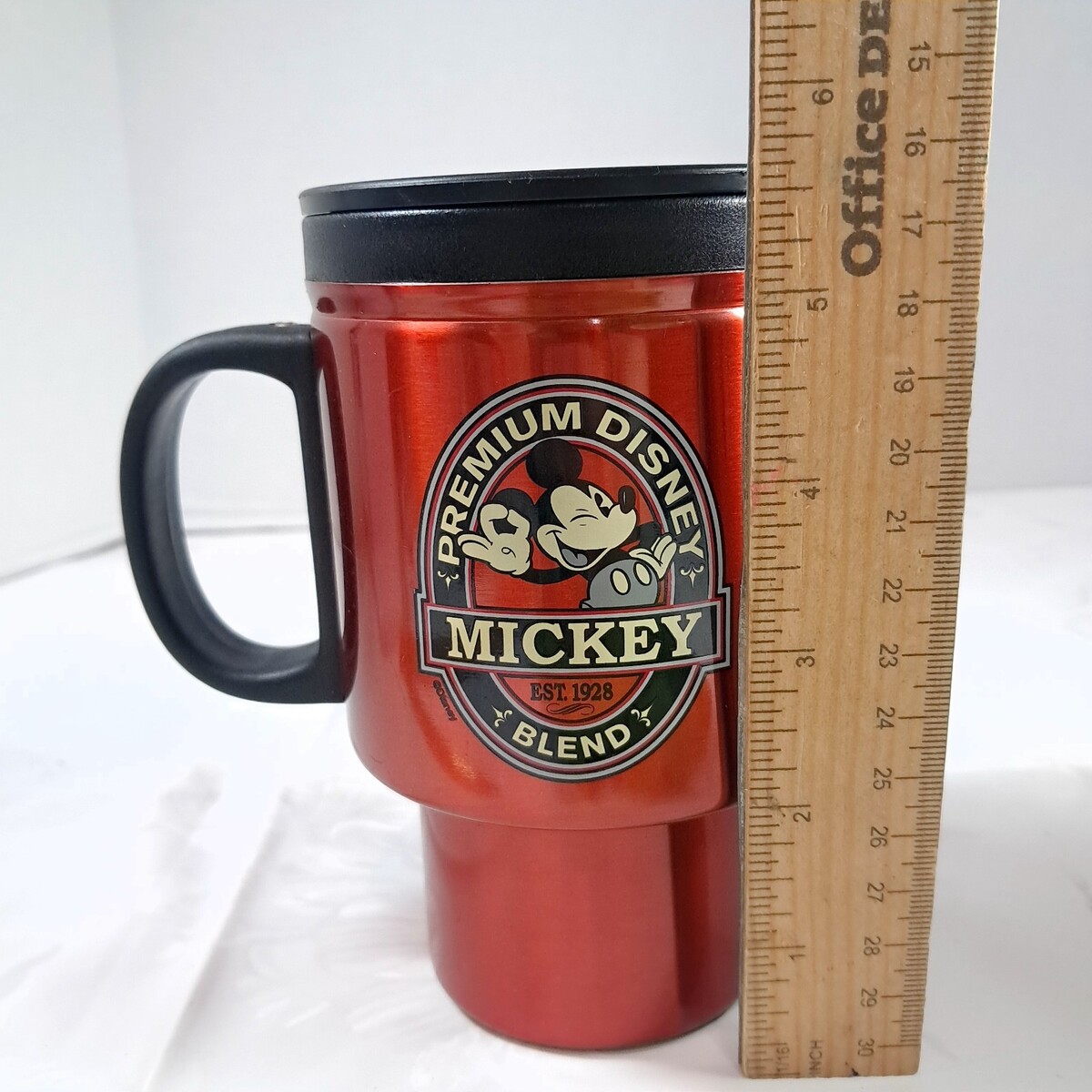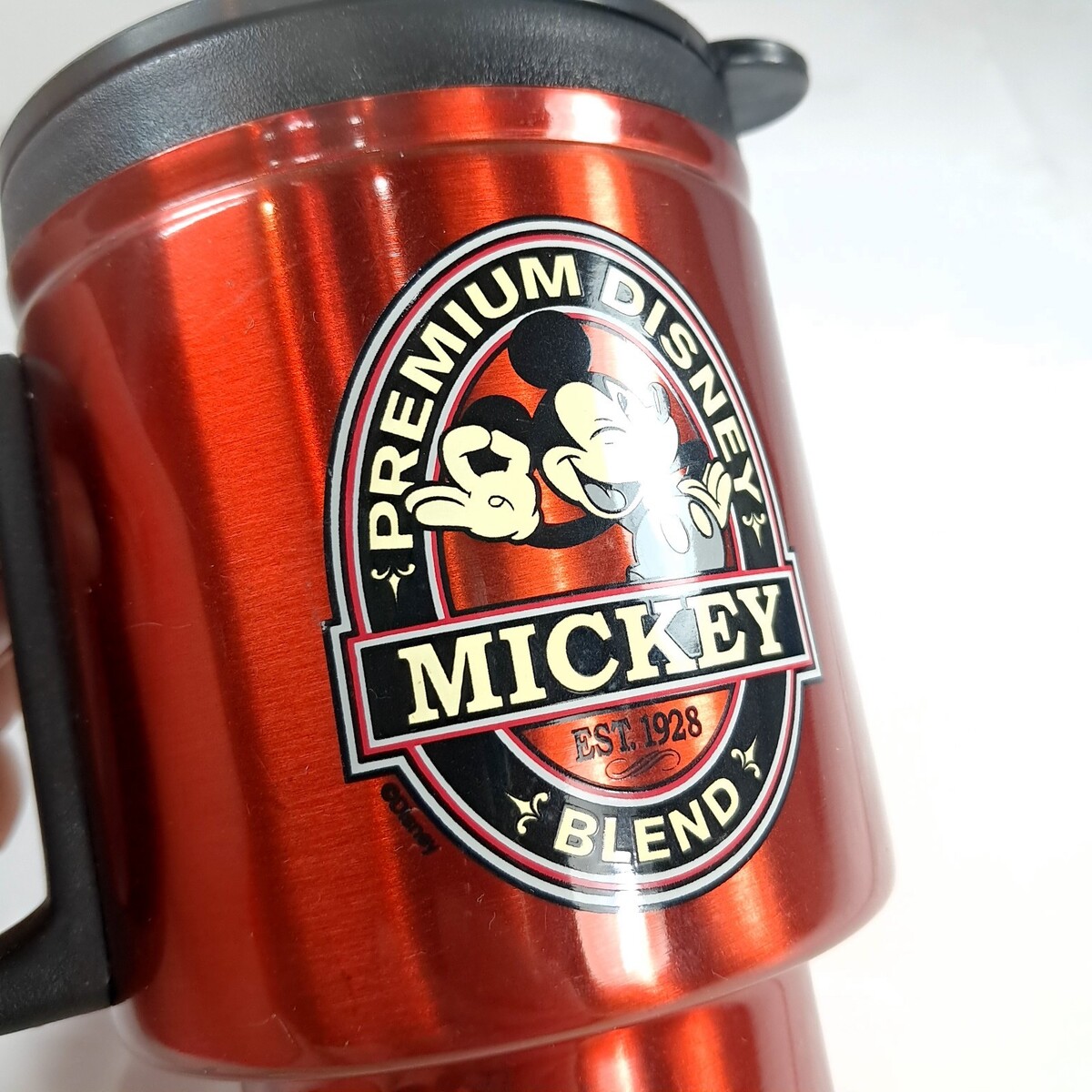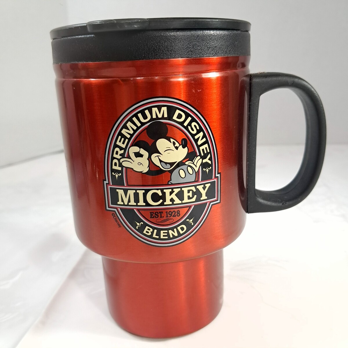 - Premium Disney Mickey Blend Coffee Travel Mug Red Metal Insulated handle Mouse