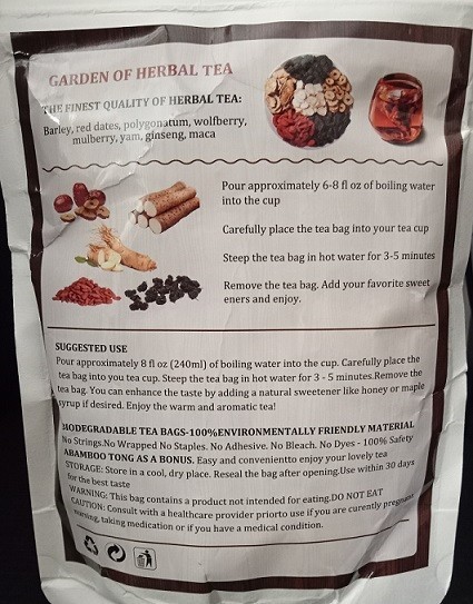 Ginseng 5 Treasure Tea includes Red dates, wolfberries, mulberries, yellow essence, maca slices, ginseng (artificially grown for 5 years and less), according to the traditional recipe, after low temperature baked, grind down of them, packed.