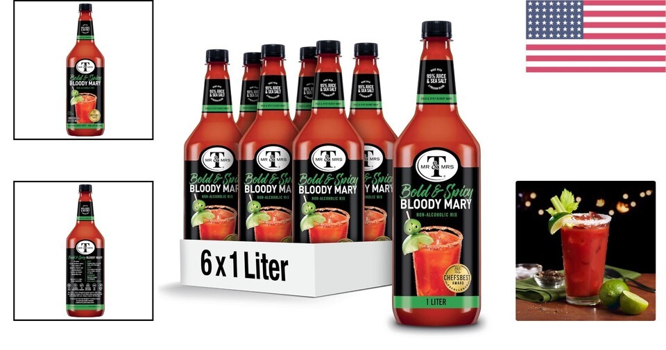 - Premium Spicy Bloody Mary Mixer, 6 Bottles of 33.8 Fl Oz - Perfect for Mocktails