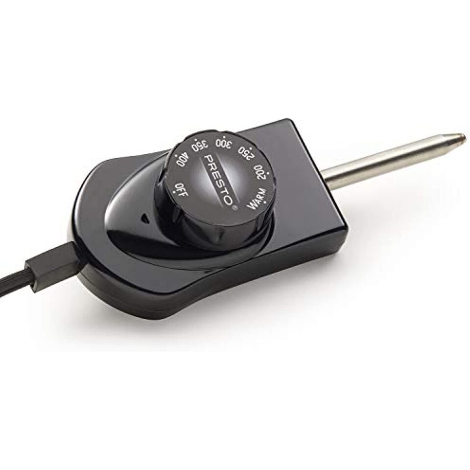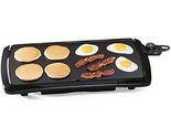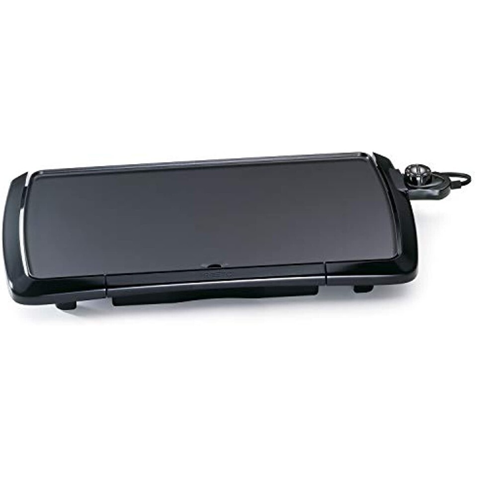 This Presto electric griddle offers sleek styling with a cool-touch base on the front and both sides. It features a generous 10 1/2- x 20-inch nonstick cooking surface, great for any meal and buffet-style serving. Coated with a premium nonstick finish, the cooking surface and backstop ledge provide easy, stick-free food handling. The Control Master* heat control maintains the desired cooking temperature automatically. A slide-out drip tray removes for easy cleaning. Griddle is fully immersible and dishwasher safe with the heat control detached.