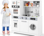 Pretend Play Kitchen Wooden Toy Set Kitchen Accessory Playset with Real Lights Sounds-White - Color: White