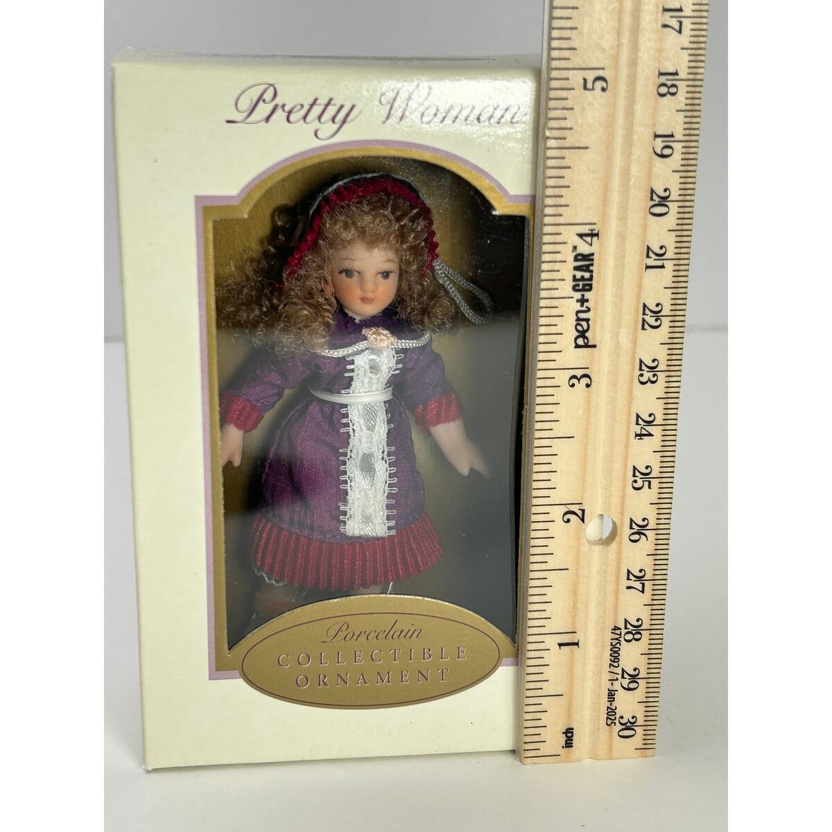 - Pretty Woman Porcelain Doll Ornament Lavender Lace Dress Blonde Curls 2004 DG