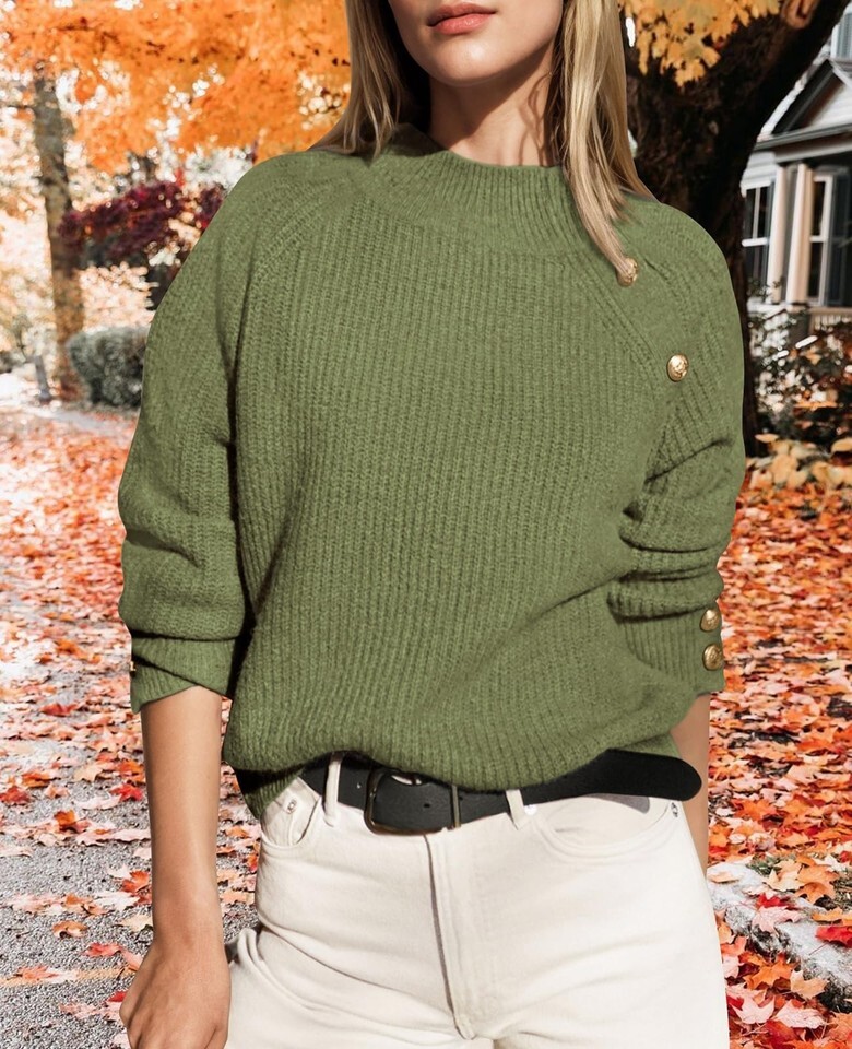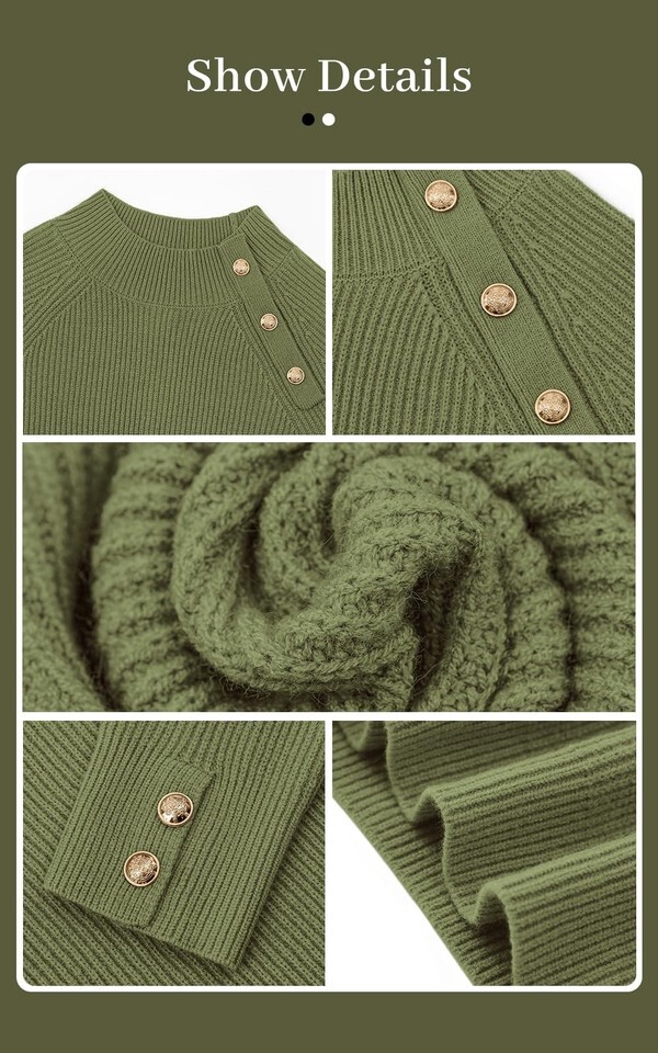 CATEGORIES: Winter/fall sweaters for women trendy/ Raglan sleeve cute sweaters/ Solid color ribbed knit womens sweaters/ Mock neck pullover sweaters for women/ Shiny buttons women's sweaters/ Chunky knit sweater women/ Slouchy women sweater/ Holiday sweaters for women 2025/ Chunky knitted pullover Sweater/ Soft warm womens sweaters dressy casual knitted sweater