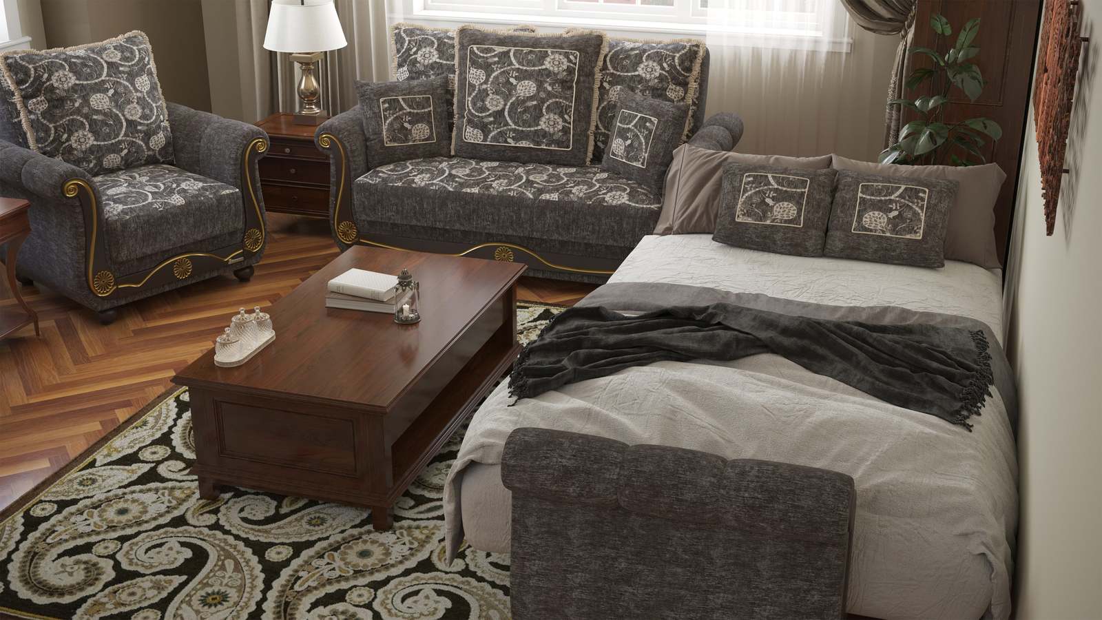 FASHIONABLY CONVENIENT: With one swift motion, transform this loveseat into a sleeper that measures in at 52'' x 53.2'' or utilize the included storage compartments for your very own storage needs. ASSEMBLY made easy in 30 minutes or less! DISCLAIMER: ITEMS IN IMAGES SOLD SEPARATELY