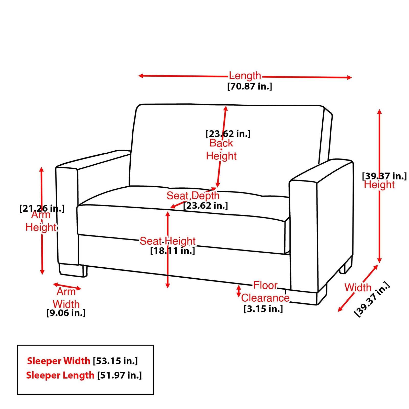 SUITABLE FOR SMALLER SPACES: The perfect size for functionality in a studio apartment, dorm room, and even in the living room of a home! Enjoy the practicality of a full sized loveseat without dealing with any additional unnecessary bulk. Utilize our click-click technology in order to turn this loveseat into a bed with one swift move, thus changing your living room into a guest room. *REFER TO THE IMAGES FOR DETAILED ACCURATE LOVESEAT MEASUREMENTS*