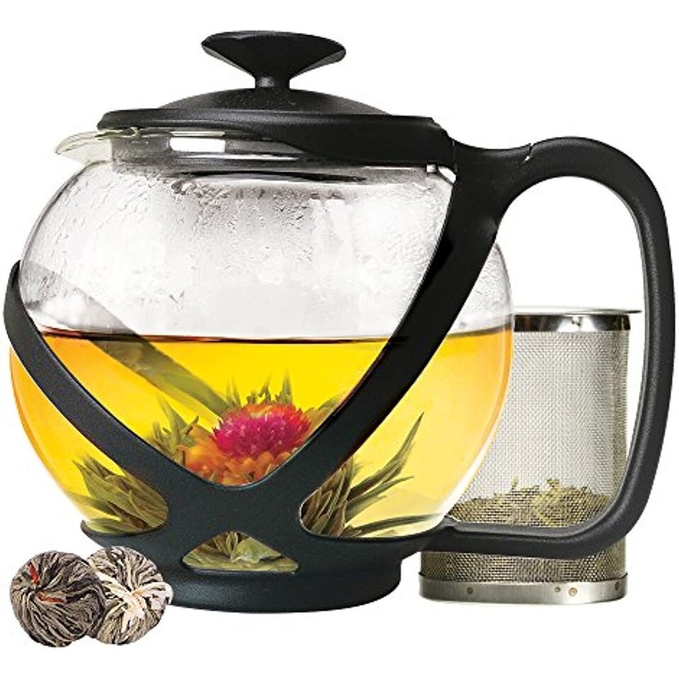 - Primula, Black Tempo Glass Teapot with 2 Flowering Teas, 40 oz, 40 Ounces