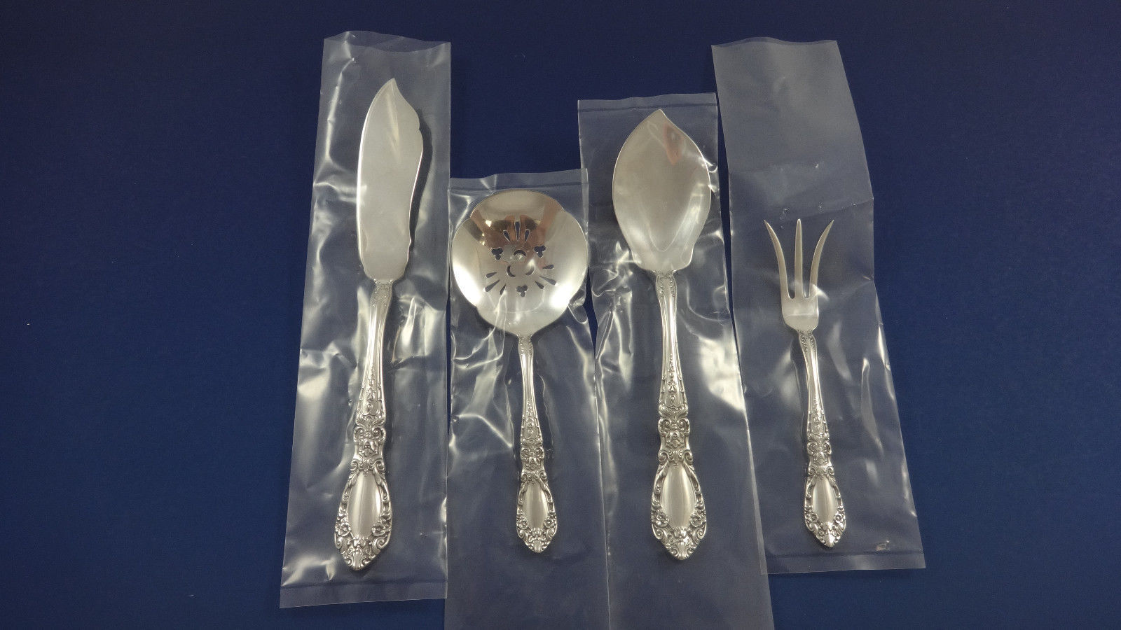Excellent condition, with no monograms. This has been professionally polished and sealed in individual plastic sleeves. Beautiful!