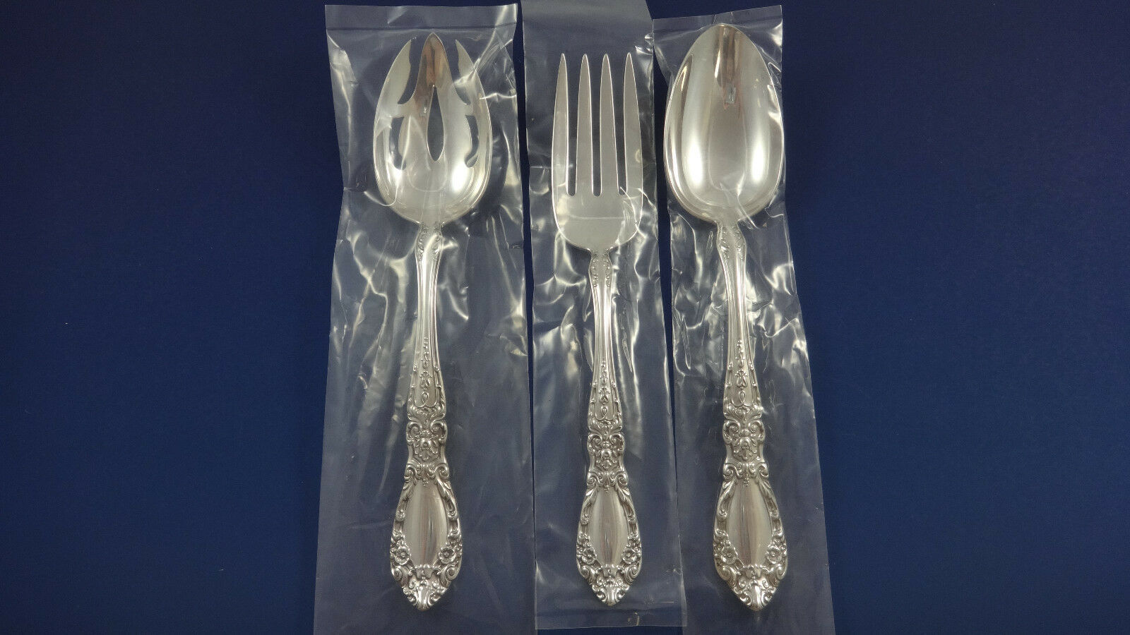 COMPLETE FLATWARE SETHOSTESS HELPERSHOLLOWWARE / TEA SETSMUSEUM QUALITY/FIGURAL SILVERFINE ESTATE VINTAGE JEWELRYMID-CENTURY MODERNSILVER FLATWARE SILVERWAREBuccellatiChristofleGeorg JensenNew Georg Jensen HollowwareNew Georg Jensen JewelryGorhamInternationalLuntMichael Aram - NewReed BartonTiffany Co.TowleWallaceWhitingPLACE SETTINGS