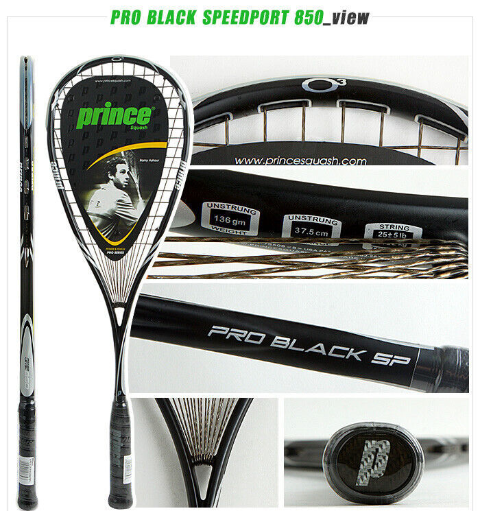 - Prince Pro Black Speedport 850 Squash Racquet Racket 136g 685mm 464sq.cm 16x16