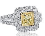 Princesse Coupe Faint Jaune 1.51 Carats Fiançailles Diamant Halo Bague 14k Or