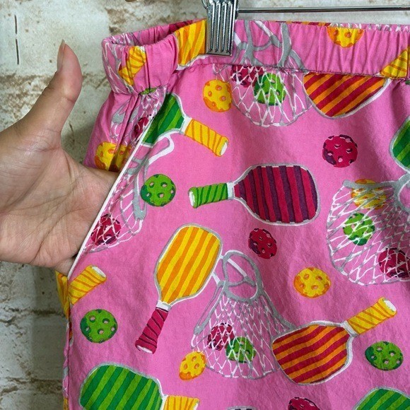 Printfresh Pretty in Pickleball Short Sleeve Cropped Pant Pajama Set Size XL - 100% cotton - short sleeve top and cropped pants - pink with pickleball set allover print - elastic waistband and pockets