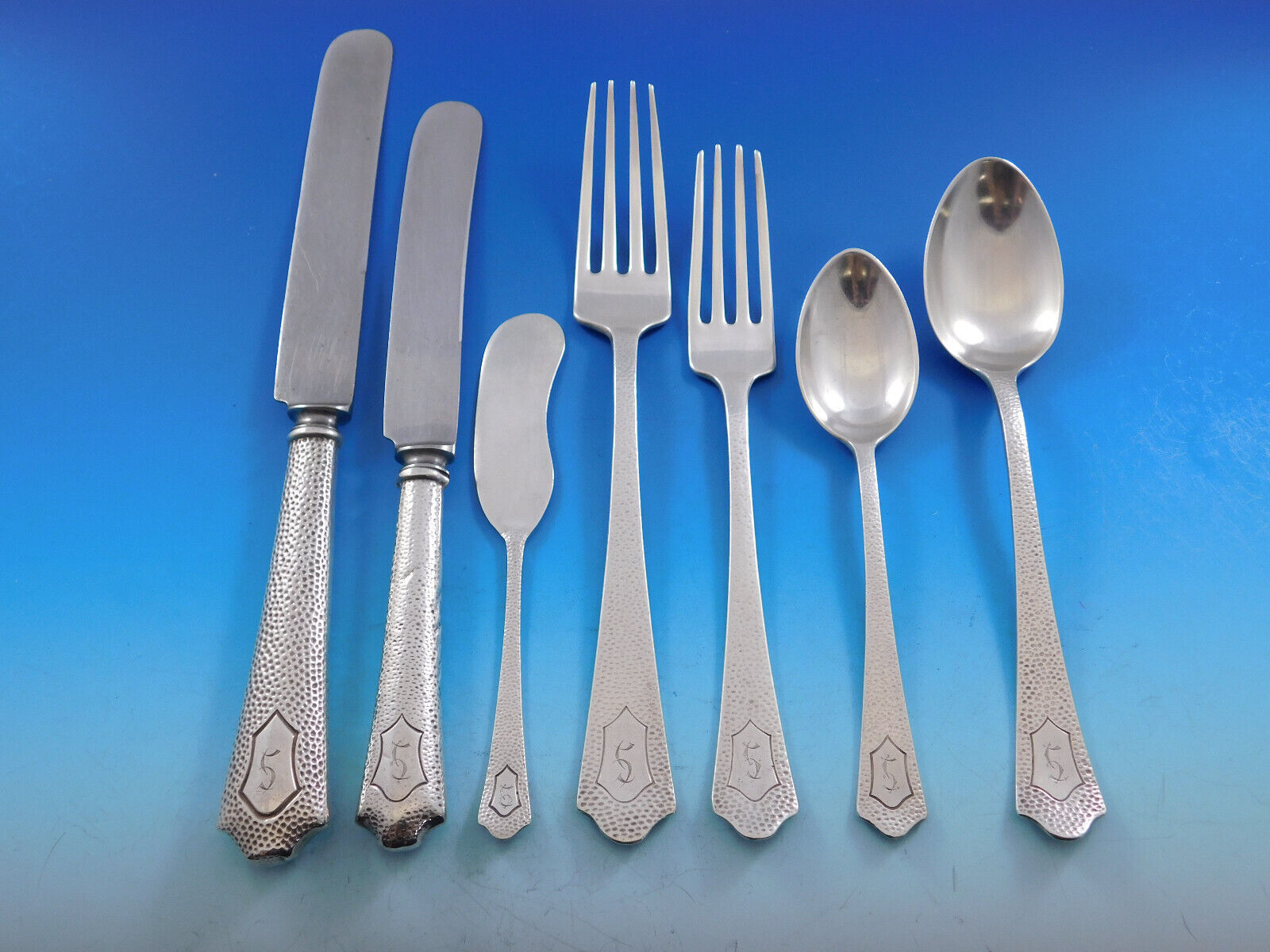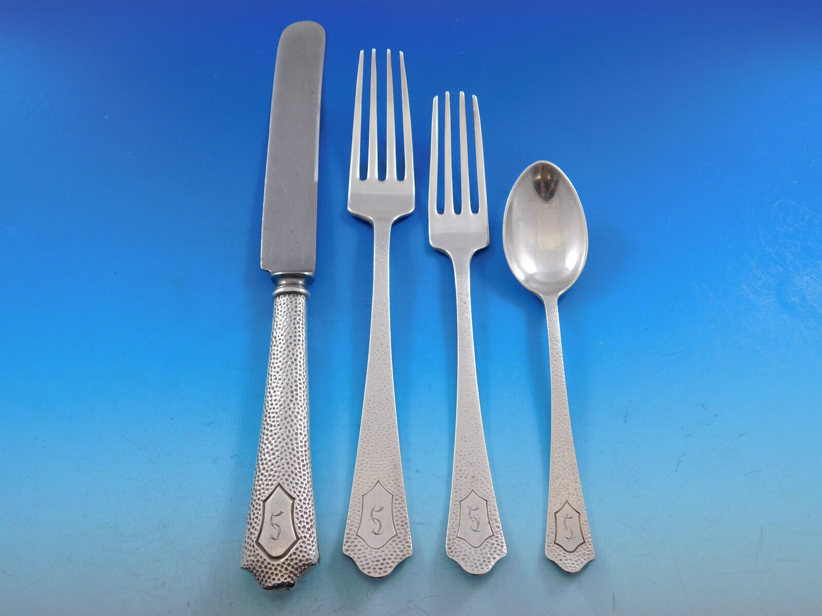 Scarce Arts Crafts Priscilla by Manchester c1932 Sterling Silver flatware set with hammered design - 37 pieces. This set includes: