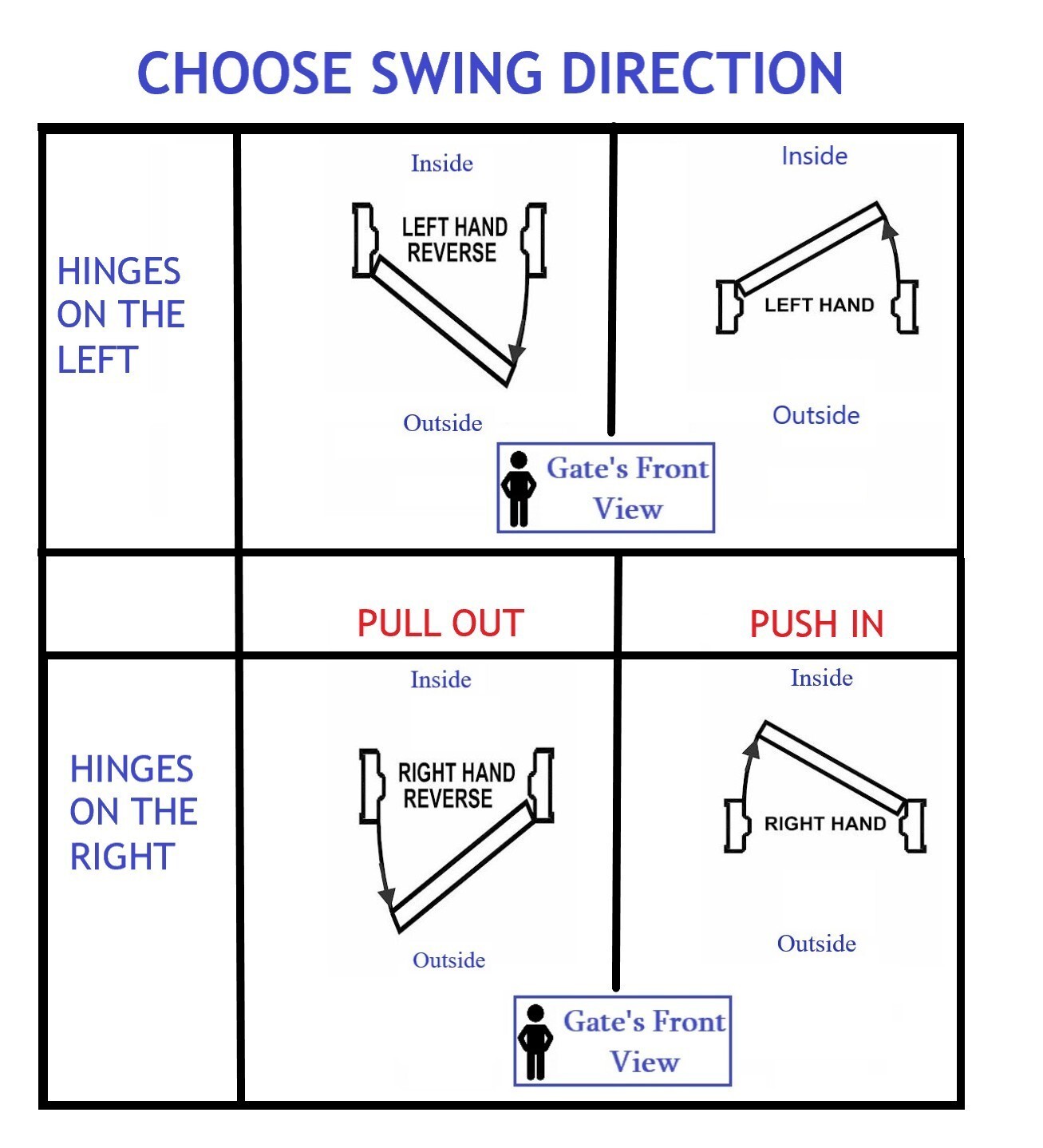 1. Rough opening: 36". (Rough opening holds the gate, posts and hinges installed.) Height: 60". The design in this listing will be fabricated in this size.