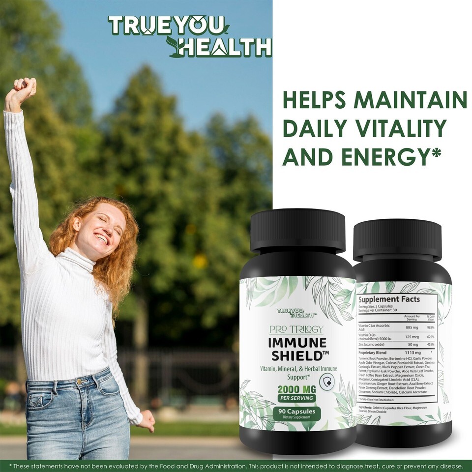 Comprehensive Immune Support Capsules - Pro Trilogy Immune Shield is a dietary supplement designed for adults who want to maintain a strong, healthy immune system. Ideal for anyone looking for year-round immune support.