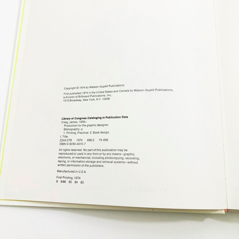 - Production For The Graphic Designer - James Craig First Printing 1974 HBDC