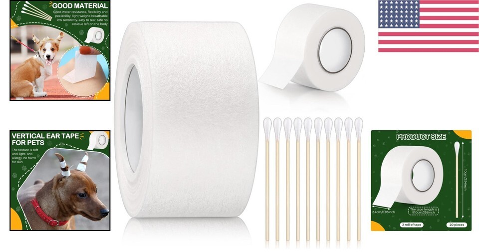 - Professional 1 Inch Dog Ear Tape & Non-Woven Swabs: Ear Health Essentials