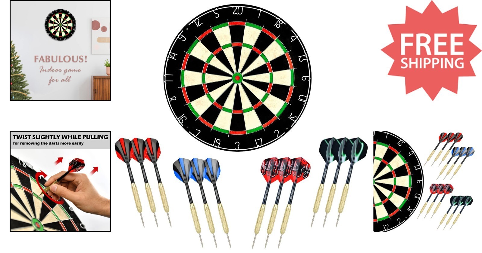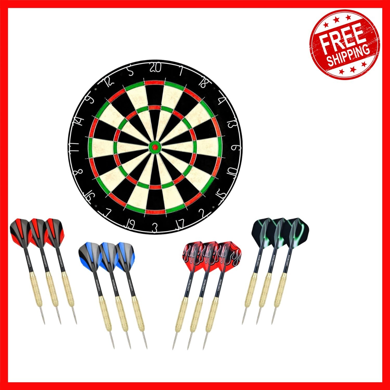 - Professional 17.8'' Dartboard with 12 Steel Darts - Ideal for Serious Players