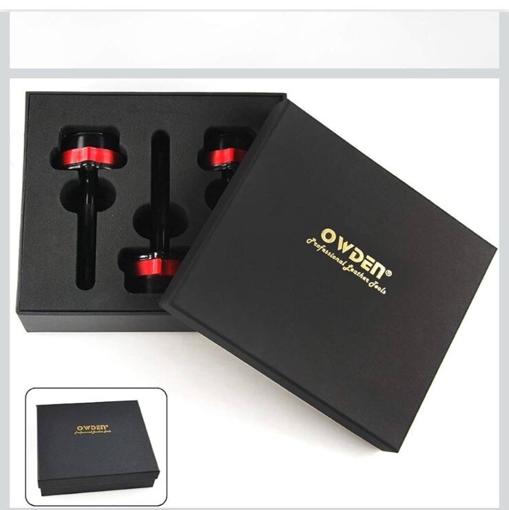 The Owden Professional 3 Pieces Leather Belt End Cutter Punch Set is a high-quality tool set designed for leathercraft enthusiasts. This set includes three U-shaped punches in a vibrant red color, perfect for cutting clean and precise ends on leather belts and straps. The Owden brand ensures reliability and durability, making this set a valuable addition to any leathercrafting project.