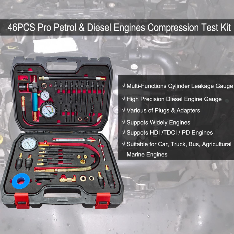 - Professional 46-Piece Diesel & Petrol Engine Compression and Leak down Tester Ki